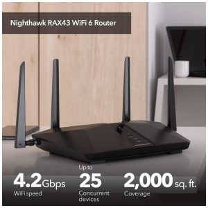 Nighthawk AX4200 Roteador Wi Fi Vel 4.2 Gbps 20 Aparelhos Área 185m2 NETGEAR RAX43 100NAS Preto