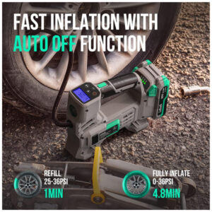 Compressor de Ar com Bateria Recarregável 20V 12V 30PSI KENSUN Preto