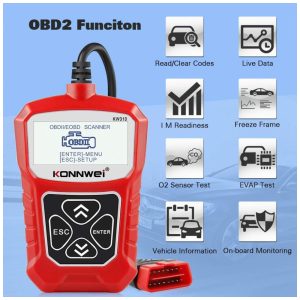 Scanner Automotivo KW310 com Diagnóstico de 10 Modos de OBD2 12V KONNWEI Vermelho