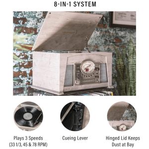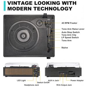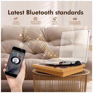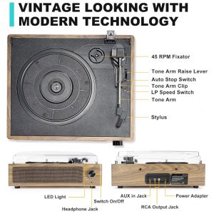 Toca Discos com 3 Velocidades Bluetooth Alto Falante e Gravação de Vinil popsky 002 Marrom