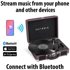 Vitrola Toca Discos 3 Velocidades sem fio com USB 45 RPM 110v VICTROLA VSC 550BT FOT Marrom