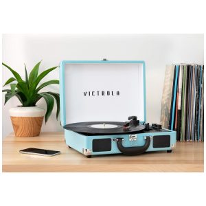 Toca Discos Retrô com Suporte de Record Player e Bluetooth Vitrola Journey Azul Turquesa