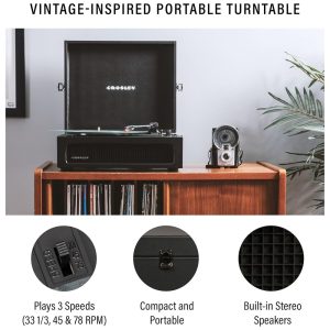 Vitrola Toca Discos Bluetooth com 2 Velocidades e Sistema de Som 110v CROSLEY T150C BK Preto