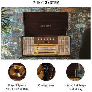 Vitrola Toca Discos 3 Velocidades Bluetooth Rádio AM FM CD CROSLEY CR7016A MA Marrom Escuro