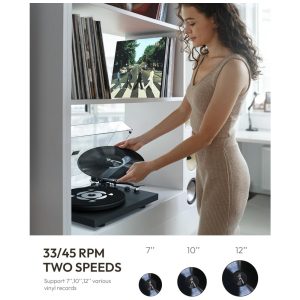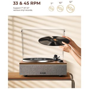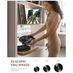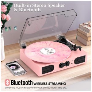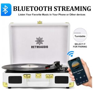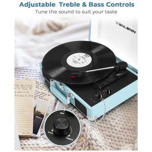 Toca-Discos Portátil em Formato de Maleta com Bluetooth e Alto-Falantes Integrados – Controle de Graves e Agudos 3 Velocidades TANLANIN
