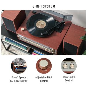 Toca Discos 5 em 1 com Base Bluetooth Rádio FM e Gravador USB Victrola VTA75ESP Marrom