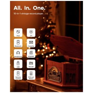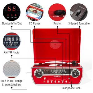 Vitrola Toca-Discos com Bluetooth CD AM/FM e Alto-Falantes Inclusos1975T Crosley Madeira
