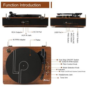 Toca-discos de Vinil Bluetooth com Alto-falantes Estéreo de Estante de 36 Watts Sistema HiFi com Cápsula Magnética Gravação USBSeeYing