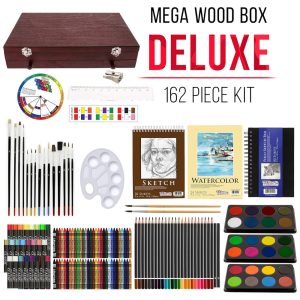 Lápis de Cor Profissional 162Pcs Maleta de Madeira para Pintura e Desenho US ART SUPPLY 142 PPBW