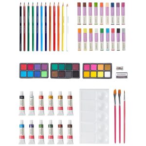 Kit Lápis de Cor Profissional com Estojo 59 peças Tintas Acrílicas Aquarela MMARTE ETTZ1US Branco
