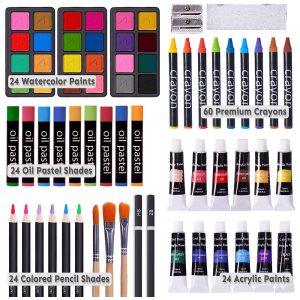 Kit Lápis de Cor Profissional com Estojo 222 peças Tintas Acrílicas Aquarela IBAYAM 03 Preto