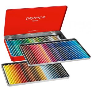Kit Lápis de Cor Profissional em Caixa de Lata 120 peças Caran dAche J3888420 Prata