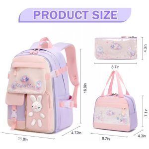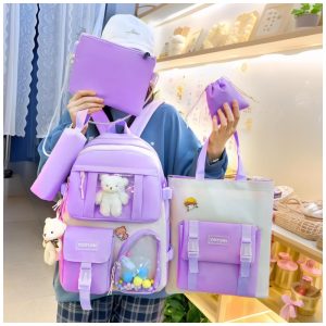 Mochila HORHREAR Kawaii 5 em 1 escolar transparente com pelúcia e estojo roxa clara