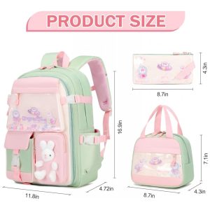 Mochila FENGDONG verde para adolescentes estilo kawaii com laço e pompom para notebook até 156″