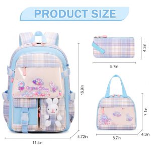 Mochila FENGDONG azul para adolescentes estilo kawaii com laço e pompom para notebook até 156″