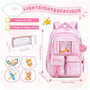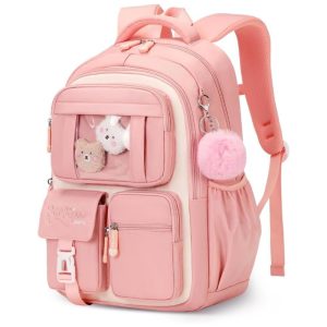 Mochila FENGDONG rosa para adolescentes estilo kawaii com laço e pompom para notebook até 156″