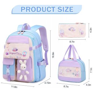 Mochila HORHREAR Kawaii 5 em 1 escolar transparente com pelúcia e estojo azul claro