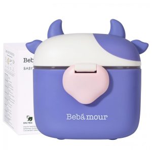 Dispenser Fórmula Bebê Bebamour Roxo Vaquinha linda Portátil com Colher Nivela 450ml