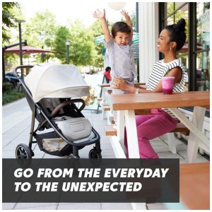 Carrinho de Bebê Travel System Modular com Assento de Carro Infantil LiteMax Barra Anti-Rebote e 23 Configurações Evenflo Cinza