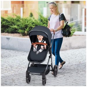 Carrinho de Passeio Vagão Duplo com 2 Assentos Altos e Dossel UV Ajustável Radio Flyer Voya Cinza