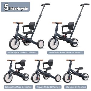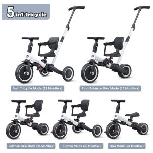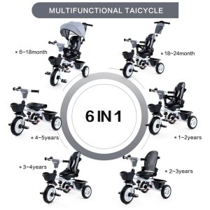 Triciclo Infantil 6 em 1 com Alça Ajustável Cobertura Removível e Arnês de Segurança para Crianças de 1 a 5 anos JMMD Cinza