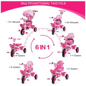 Triciclo Infantil para Passeio com Assento Ajustável 6 Estágios Idade Recomendada 1 a 6 Anos BOOWAY Rosa