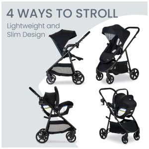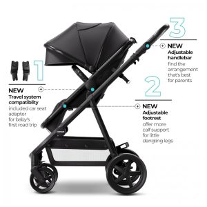 Carrinho de Bebê Conversível 2 em 1 com Modo Berço e Dobrável Mompush Preto