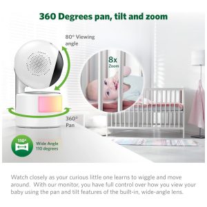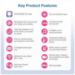 Baba Eletrônica Câmera 1080P e Monitor HD 360 720P com Visão Noturna VTECH RM7764HD Branco
