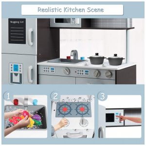 Cozinha de Brinquedo Realista em Madeira para Crianças de 3 Anos ou Mais Costzon Cinza