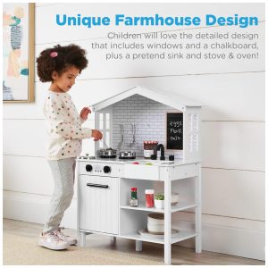 Cozinha de Brinquedo Realista em Madeira para Crianças de 3 a 8 Anos Costzon Branca