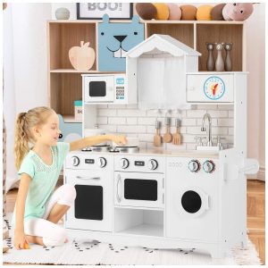 Cozinha de Brinquedo Realista 11 em 1 em Madeira para Crianças de 3 a 8 Anos Costzon Branca
