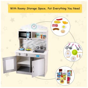 Cozinha de Brinquedo Realista em Madeira para Crianças de 3 a 8 Anos HONEY JOY Branca