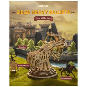 Quebra Cabeças 3D em Madeira para Adultos Tema Catapulta Mecânica com 142 Peças ROKR Marrom