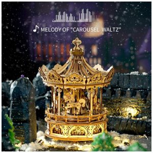 Quebra Cabeças 3D em Madeira para Adultos Tema MONTANHA-RUSSA Mecânica com 260 Peças ROKR Marrom