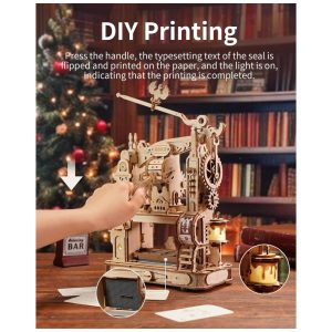 Quebra Cabeças 3D em Madeira para Adultos Carimbo Mecânico com 303 Peças e Luz LED ROKR LK602 Marrom