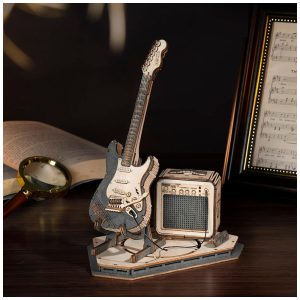 Quebra Cabeças 3D em Madeira para Adultos Tema Guitarra com 140 Peças ROKR RL-TG605K Marrom