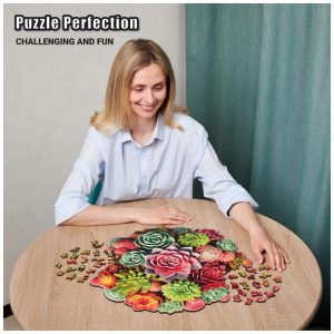 Quebra Cabeças em Madeira MDF para Adultos Tema Flores Suculentas com 500 Peças LEOGOR Colorido