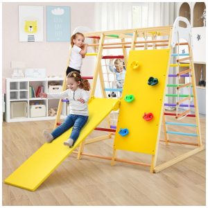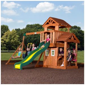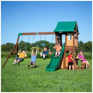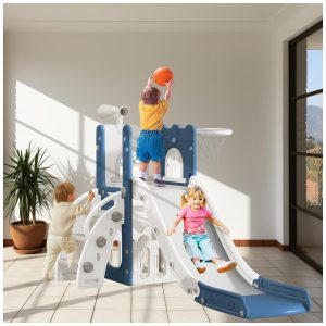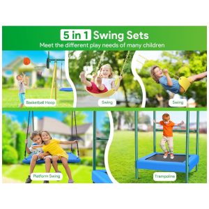 Playground Infantil de Metal com Cesta de Basquete Trampolim e 3 Balanços Vibemo VB-SW04 Verde