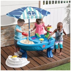 Mesa de Atividades Sensoriais na Areia e Água Inclui 10 Acessórios e Guarda Sol Step2 Azul