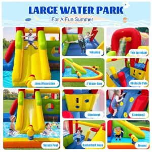 Parque Aquático Inflável com Piscina e Escorregador Inflável e Portátil – Cessbong