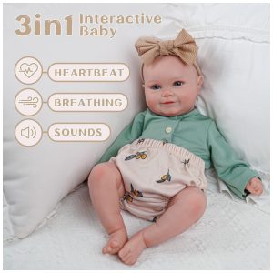 Bebê Recém-Nascido NewbornBonecas Reborn Interativas BABESIDE 3 em 1 com Batimentos Cardíacos que Respiram 50cm de Vinil Macio Realistas e Posicionáveis Boneca de Bebê de Vida Real