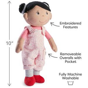 Boneca HABA Snug Up Doll Rumbi com Cabelos Pretos e Jardineira Rosa – Lavável à Máquina para 18 Meses e Acima