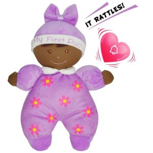 Boneca de Pelúcia Macia My First Doll Hazel da June Garden com Roupas Roxas e Chocalho