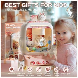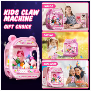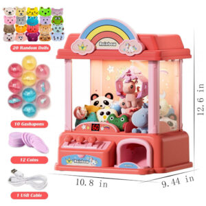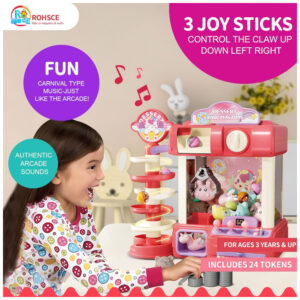 Skirfy Máquina de Garra Mini Arcade Rosa com Prêmios, Som e Luzes para Crianças