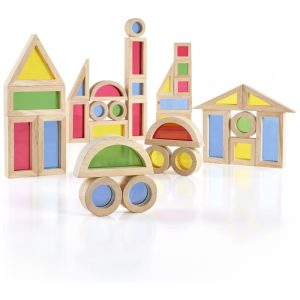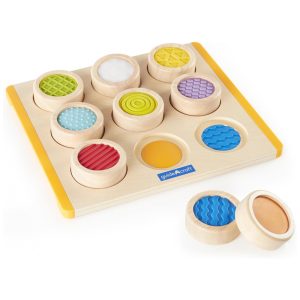 Jogo sensorial 3D Feel & Find Icons Guidecraft em madeira para associação tátil de formas e peças