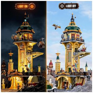 FUNWHOLE Torre Observatório Steampunk com Iluminação e 2744 Peças – Conjunto Exclusivo para Adultos