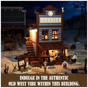 Conjunto de Blocos de Montar FUNWHOLE Escritório do Xerife LED 1240 Peças Temática Velho Oeste