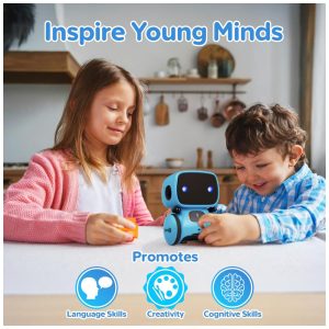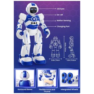 Robô Interativo com Controle Remoto Olhos LED que Brilham Música e Dança 3 Anos GILOBABY Azul