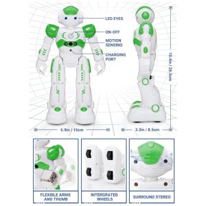 Robô MindPal com Auto-Demonstração e Olhos LED. Controle Remoto Recarregável +3 Anos Cor Verde.