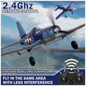 Avião de Controle Remoto com Tecla Acrobática para Crianças e Adultos LEAMBE F4U Corsair Azul